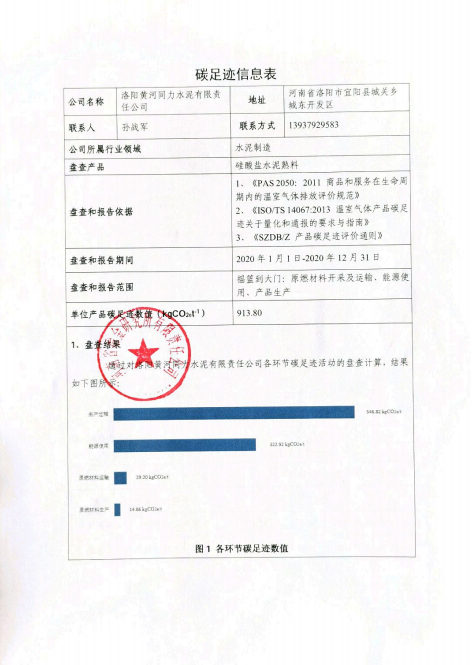 洛陽(yáng)黃河同力水泥有限責任公司產(chǎn)品碳足跡盤(pán)查報告(2020年度)